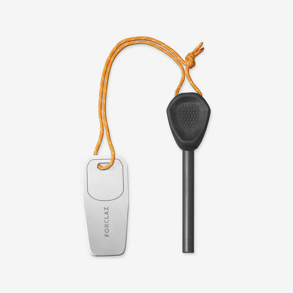 Hold the ergonomic handle firmly between thumb and forefinger. With the other hand, rub the steel scraper along the length of the rod with a strong and rapid gesture, which will thus create sparks! The black coating over the stone will disappear with use.