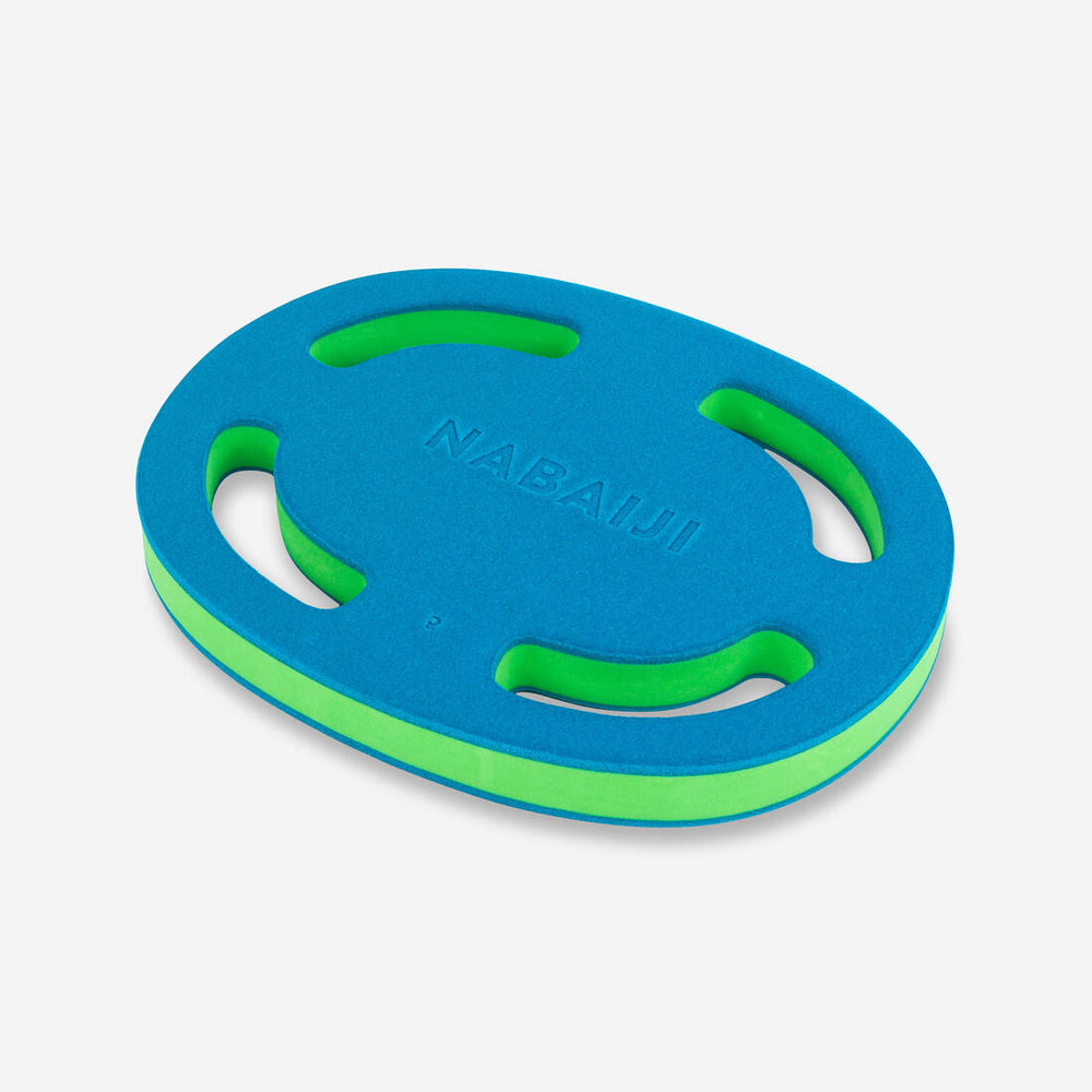 The foam swimming board is part of the “Discovering swimming” experience The kids are already comfortable in the water, know how to use their arms and legs to balance themselves. This small board will allow them to stretch out in the water and discover the swimming position (horizontal position) in order to start kicking their legs and also arm coordination by alternating the movements.