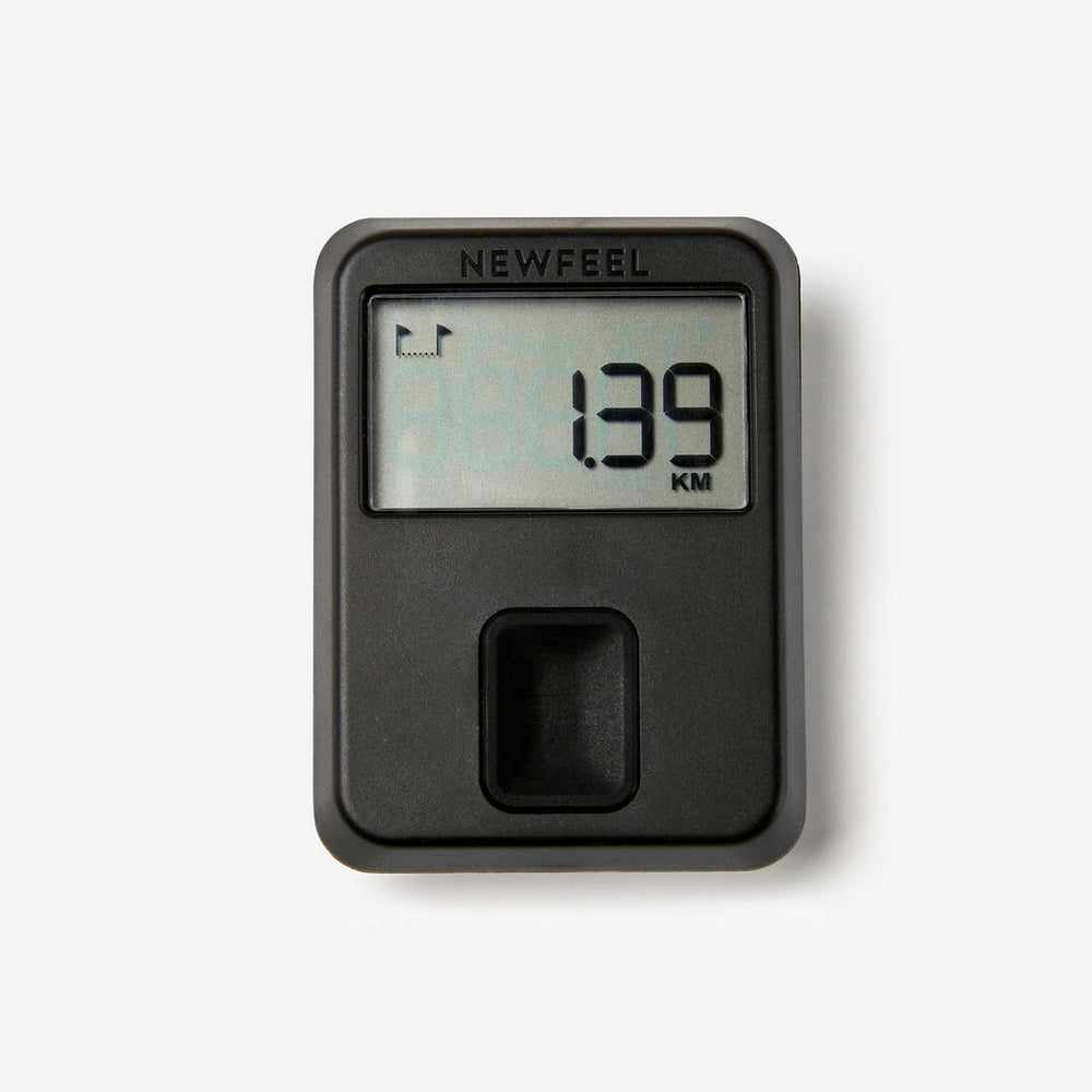 This pedometer measures your steps and the distance covered whatever its position: on the belt, in your pocket or in your bag.