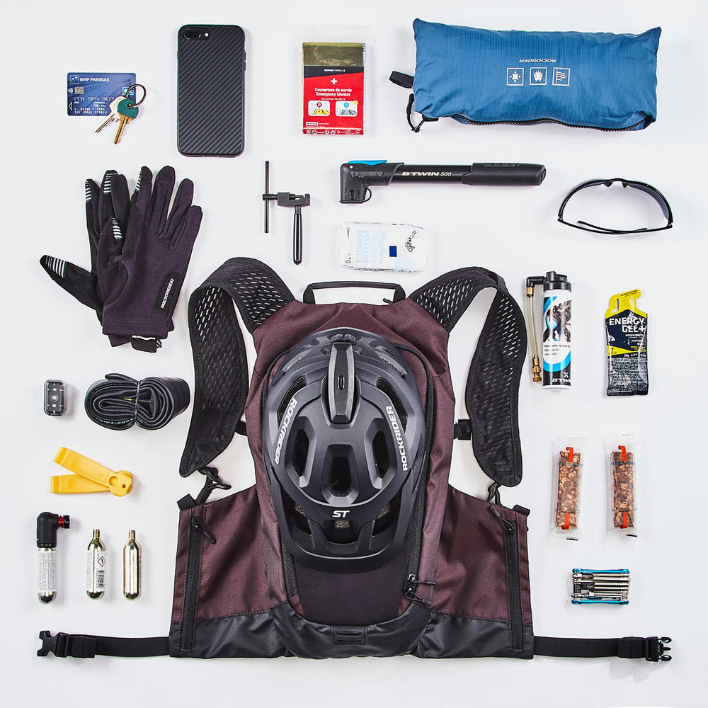 To improve the robustness of your bag, we recommend waterproofing it. Even though the fabric is already water-repellent, extra waterproofing will stop mud getting caked onto it. After each ride, remember to wash and dry your water bladder using the cleaning kit (product ref. 5935596). If you don't want to get a plasticky taste, put your dry water bladder in the freezer. This will stop any flavour transfer.
