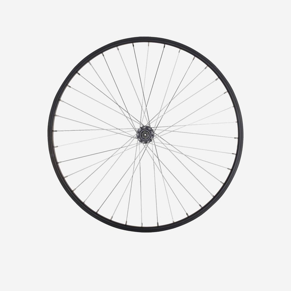 Single-walled aluminium rim: ETRTO 507x21C Axle: OLD 100 mm. Hollow axle made of steel. 36 crossed spokes. Weight: 910 g. Sold with a quick release mechanism.