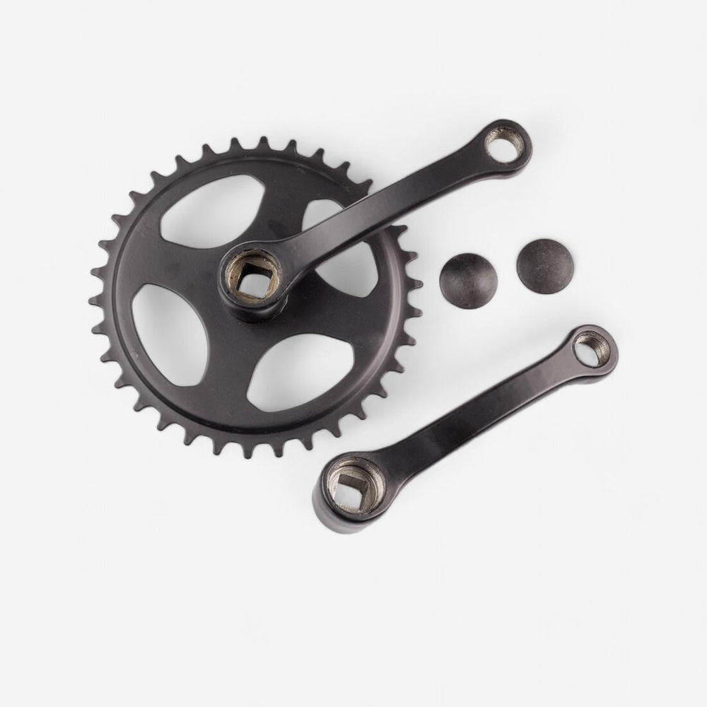 This single chainset is equipped with a 34 teeth sprocket and 114 mm crank arms.