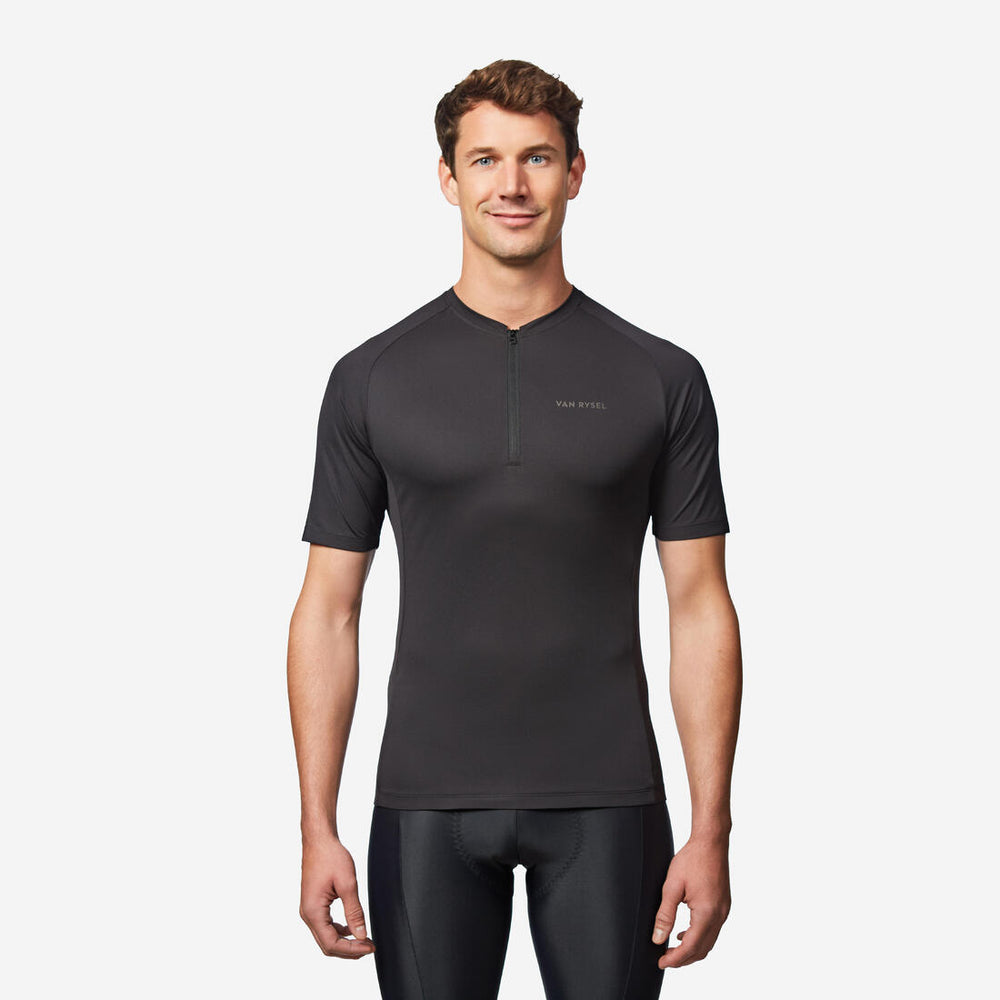 This men's cycling jersey has a comfortable fit. It's made from lightweight material that effectively wicks away perspiration. The zipped pocket at the back lets you carry items safely.