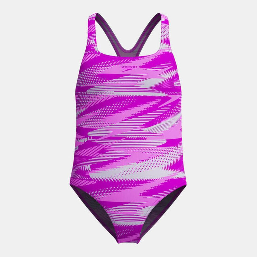 Glitchy graphics and Boom logos collide in this sporty junior Medalist swimsuit, designed to deliver extra get-up-and-go in training.