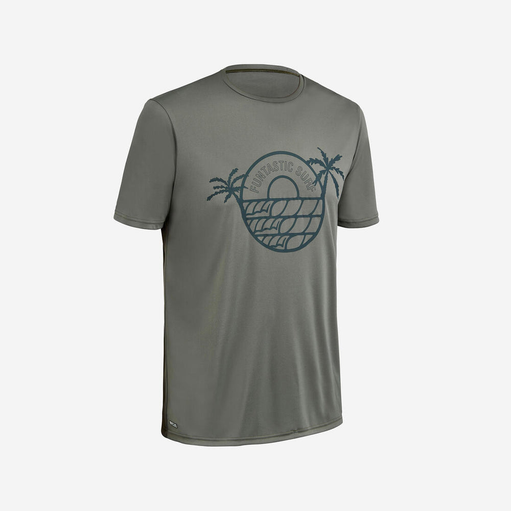 Men’s UV-resistant short-sleeved t-shirt for protection from the sun, even in the water, and to limit irritation when in contact with the board. Loose fit makes it easy to put on.