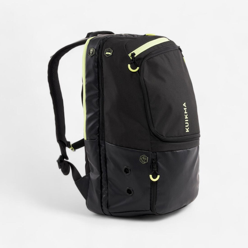 Main compartment (personal belongings). Thermal compartment (rackets). Separate, ventilated pocket (shoes). Padded pocket (computers or tablets). Capacity of 30 litres.Made from polyester.