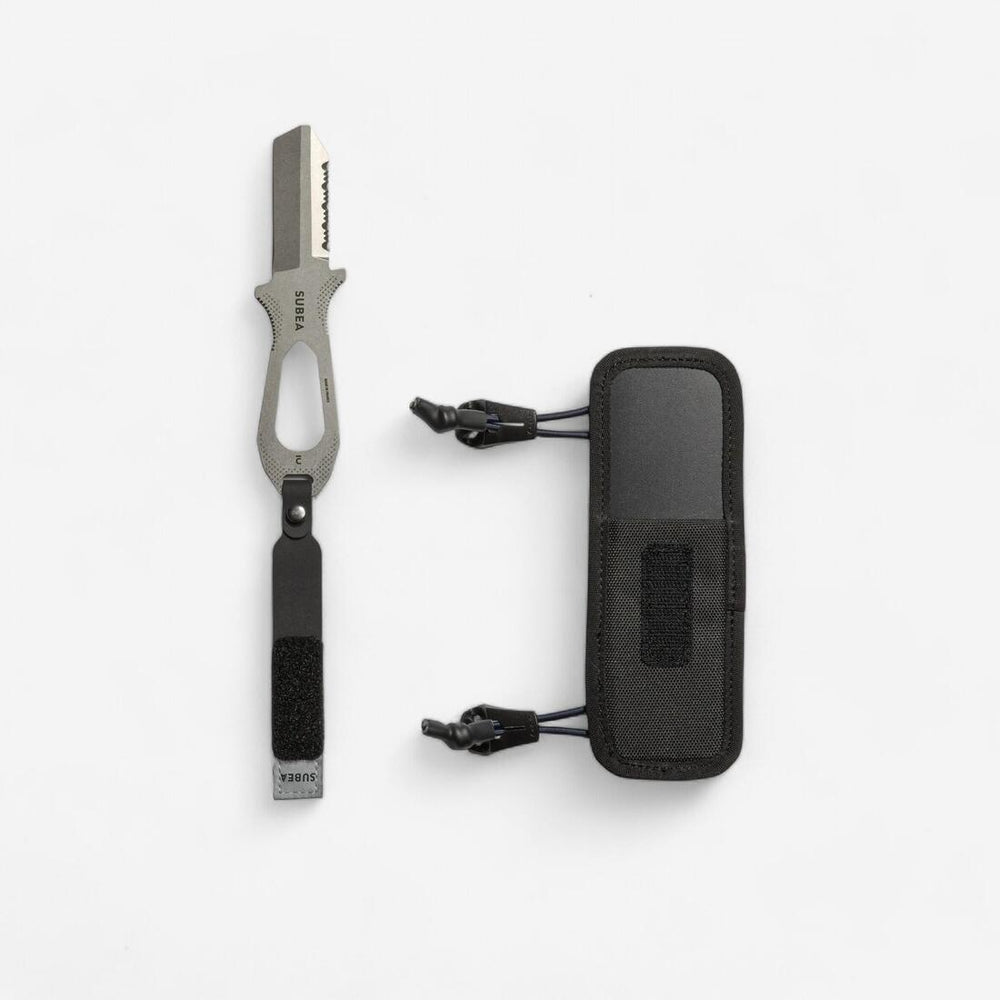 The elastic straps prevent the knife from moving and turning on the diver. We recommend attaching the sheath to the direct system, upside down, so that it can be removed and stored one-handed. The wide loop allows you to attach it elsewhere on your equipment. The straps can be closed with sturdy plastic clips.