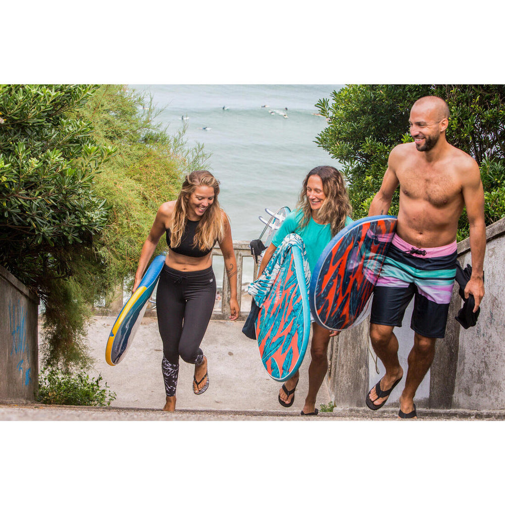 In summer, when it is hot weather but cool in the water, surfers tend to make their surfing sessions longer without changing their equipment. The risk of sunburn is therefore multiplied. Did you know? 10 to 15% of UV reflects off of the water surface meaning that 40 to 95% penetrates through up to 25 cm under water. This is why boardshorts combined with sun protection (UV top, etc.) are becoming the essential equipment for warm water surfing. Discover our sun protection range!