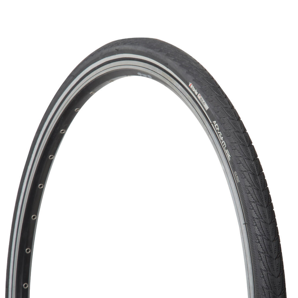 This tyre combines strong grip with efficiency and puncture protection. The reflective strips help keep you visible after dark.