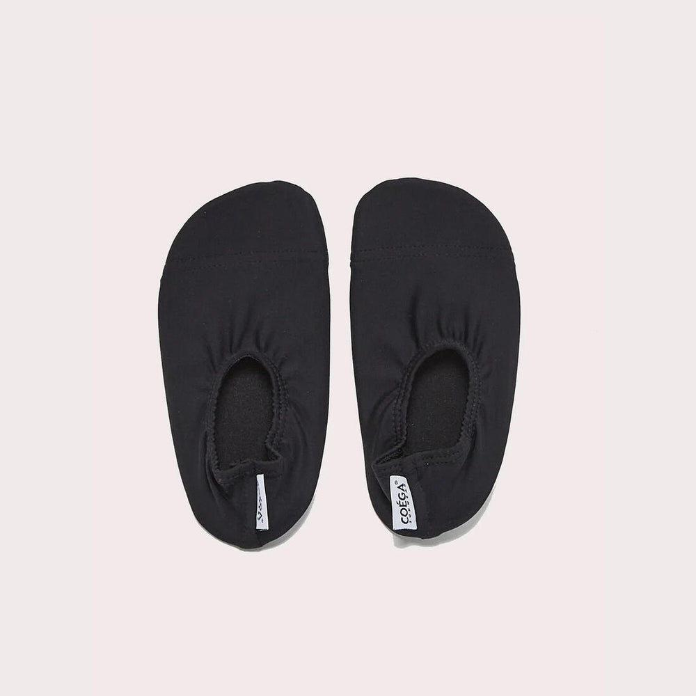 Our signature item! These resistant but lightweight anti-slip Toughtek soles provide a barefoot feel but superior protection from pool, beach, and waterpark heat and rough surfaces. Re-enforced toes and flat stitching allow for great comfort with a secure but easily removable fit, even when wet! Colour match with any items in the COEGA line for a complete sun-safe look. A great product to maintain grip on tile floors too. Go Ahead, Love the Sun!